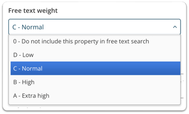 Weights are ranked from A through D, with the option to exclude entirely with the rank 0. Titles always have a set weight of B. Miscellaneous meta data, embedded in the media, always have a set weight of D. The weight of properties is defined by the creator. By default the weight for properties is C.